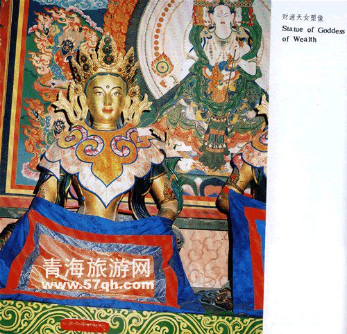 (1) 北三间:供奉着狮子吼佛像、金刚尊胜母、白伞盖佛母。其中有塔尔寺内著名彩塑"财源仙女",面容和霭,双目有神;"妙音仙女",手抱瑟琶,体态自然,婀娜刚健。