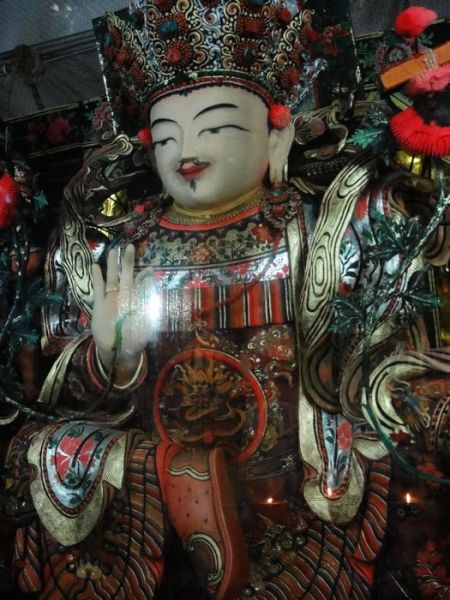 (1) 殿內供着两层楼的弥勒佛药泥塑。