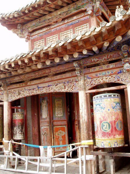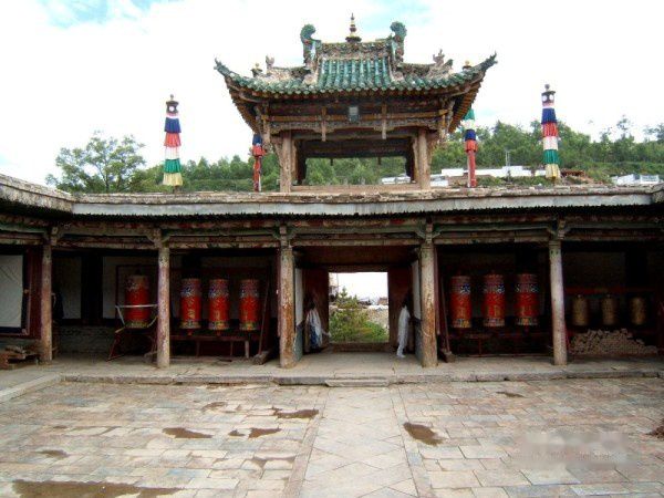在文殊殿外右侧和三世**殿左右,各有一座具有亿万嘛呢经咒的大法轮亭。