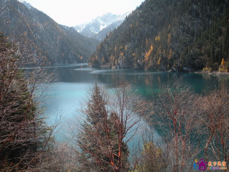 29日,六点半开始吃旅舍主人准备的馒头和白粥,哦,还有酥油茶!以前听闻对于外地人来说这东西难喝得想吐于是小心地只倒了小半碗,喝起来其实没想象中的不适应,虽然不会觉得好喝但也不难入口。吃过早饭后开始第二天的九寨之旅,出了树正寨马上看到旅游车一台,特意来抓我们这些不出沟的游人的。补了环保车票九十块,但我觉得还好,没有要我们再买一次门票挺厚道的。从最近的树正瀑布开始这天的旅程,早晨真的好冷,这天地上全都打霜了,看回那时拍的照片才发现手原来一直在没有意识到地微微颤抖着,每个人拍出来的照片都是糊的。在没有旁人的树正沟往上走去到犀牛海,同行人说要去火花海看日出于是找下行的车,不知为什么几台车都不理我们,花了好一会儿才上了车。车到火花海时太阳还被两边的山挡个严实,问司机说离光线到这还有一个多小时呢,于是没有下车一直去到盆景海从头开始往上走。老实说我真没看出来盆景滩有什么好看,就一些枯枝扎在水中而已嘛。芦苇海比较有特色,在黄色的芦苇丛中一道碧色的水穿过,玉带河这个名字还不足以形容它的魅力。绿水在两旁枯黄芦苇的映衬下显得尤其青翠,因为透明而看着很浅实际却有七米深!过了芦苇海左边的山恰好到边让阳光早一步照到水面,一棵叶子艳黄的树反射着阳光显出非常美丽的颜色,在无人的水边演绎世外桃源。