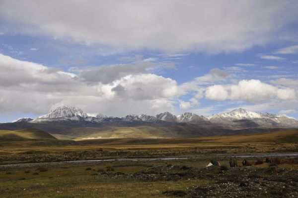 随着车子行径的路线,亚拉雪山变幻着各种各样的角度呈现在我们面前,像个孩子逐渐成长为少年、青年,到塔公,当我们看到他的全貌时,不得不被他的伟岸所折服。他像一个高大威武的神灵,注视着这片热土,守护着他脚下的生灵。