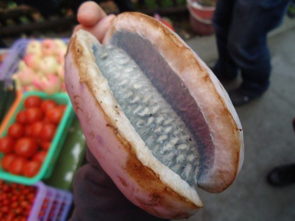 车子要在路边加水,我们就去上厕所,成都到九寨路上的厕所都是收费的哦。一元一人一次。这是在休息点买的野香蕉,5元一个,挺有意思的,甜甜的。