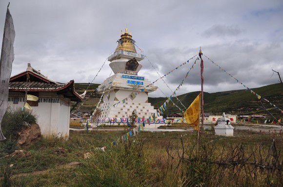 过了汶川,逐渐进入了藏羌区,不一样的风景不一样的气息。没有信仰的民族是可怕的,看着路上红白蓝绿彩旗上的藏经和一个个巨大的转经筒以及民房上显赫的羊头标志一种神圣的感觉油然而生。