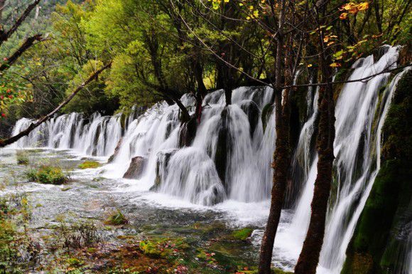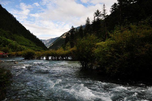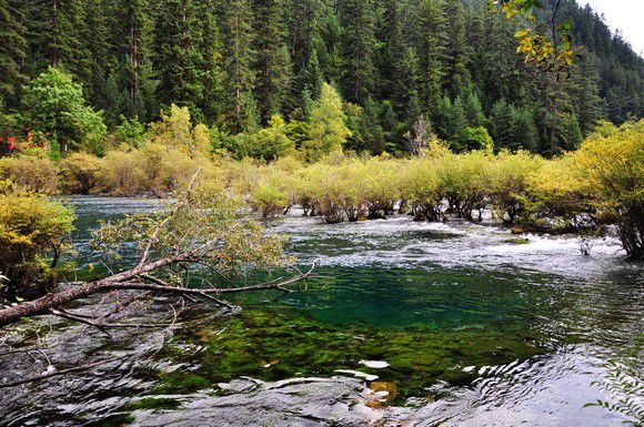 9月下旬的九寨沟还没并不是真正的童话世界,只有很少的叶子变黄了。其实我想就算九寨的树叶变黄变红了也早就失掉了童话世界的意义。因为这种相对很成熟的景点的人真是太多了,真是人多到眼晕,景区内部观光车真的能挤死人……童话世界没有童话。也或许是因为之前期望的太高了,九寨沟还蛮让我失望的。