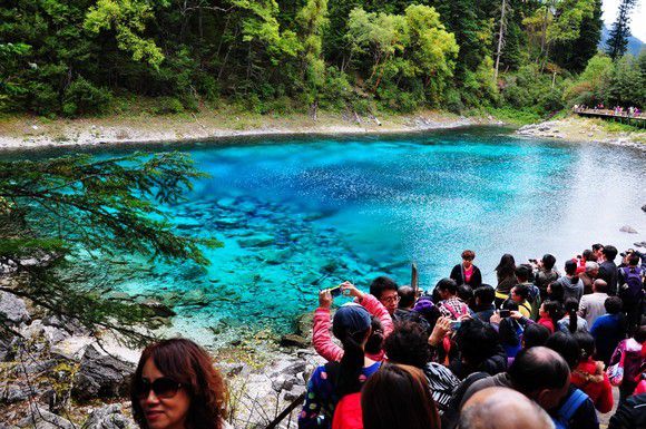听说了九寨沟人多,但是没想到会这么多!!!!!!!我们去的这天还不是周末不是特殊节假日,人都多的不行。早上5点多就起床了,7点来钟出发,因为住的地方离九寨沟大门很近了,所以车开了10分钟就到了。此时九寨沟景区门口已经有很多团队了。这天这是起个大早赶个晚集,那个可恶的导游去拿票,拿了快一个小时才拿回来!!!!!!!!真是活活气死!