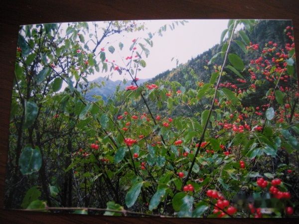 我们的目的地是高山上的海子,名字叫葫芦海。预计骑马走2小时,再步行2小时,大概就能到达了。记得先经过一大片平缓的草坡,略有几棵粗大的松树,坡上有成群的牦牛。有个临时的棚子,马夫们招呼我们喝新鲜的牦牛奶;又经过一片茂密的杜鹃林,树虽不高,但是盘根错节,老枝横陈,有些根须被我们的马儿踩得裸露在外,到五月时节,这里肯定是花的海洋;又经过一片草海,大概是高山上的一片沼泽,小路在水洼里延伸,大片的略有泛红的草儿,紫色的小花,摇曳着秋天最后的妖娆;马儿在一片陡坡前止步,因为坡太陡马儿上不去,马夫们却仍旧给我们带路,一路上松萝挂在松树间,还有各种其他品种的树木,尤其是有些树枝头挂满一串串红红小小的果实,太诱人了,问能否吃时,马夫们笑答是熊爱吃的。随即马夫们从低矮的草丛中摘到红红的果实给我们,说这是野草莓可以吃,有个马夫摘到很特别的红果子,好似红辣椒,递给我说这个叫八月瓜,味道更甘甜。