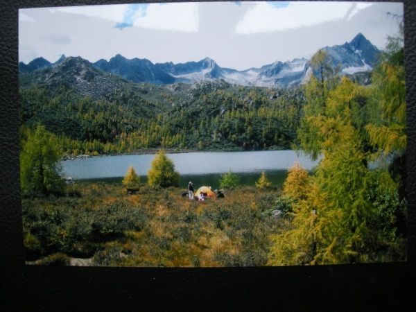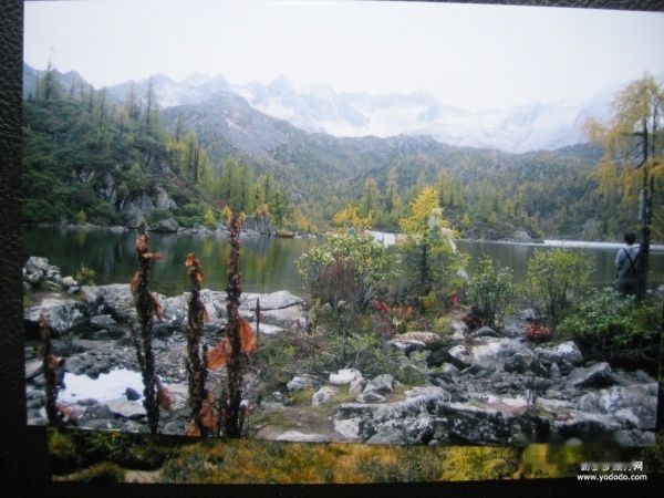 不知不觉我们已经上了山顶。眼前出现的水面就是传说中的葫芦海了。水面并不大,应该说没有黄龙的色采,没有青海湖的气派,但是别有一番风韵。我想是居高而不傲的清丽气质吧。湖水不是突然来临,而是在草坡间、石缝间、小树灌木间缓缓向你走来。长满红叶的小树好似长在水里,长满花苞的杜鹃花映照在清澈的水面上。水底的石子粒粒可数,视线向远处望去。水面平静而清澈,不是高原常见的蓝,而是似江南水乡似的绿。看得见对岸茂密的松柏,起伏的高山,以及山峦更高处的积雪。我们沿着湖边看风景,在走过一个小山坡后,发现了另一个不同的湖面,原来有两个湖,中间相连通,站在高处可见其形状似葫芦,这就是葫芦海的由来。此时已经是下午一时多,我们在湖边打开带来的干粮野餐,我们将昨晚的烙饼分给马夫们,有驴友们将自己做的饭菜给我们吃,在阳光灿烂的葫芦海边,我们吃饱了然后惬意地躺在草坡上享受地中海般的阳光,这是四五千米的高山,但只觉得如春天的江南一般亲切温暖。