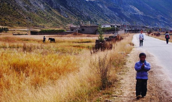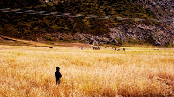 第二天,去往直贡梯寺天葬台路上的青稞地。