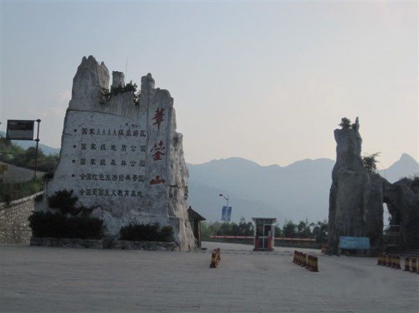 这是华蓥石林的大门,广场右侧是游客接待中心、售票处、门票82元、其中2元是保险费,符合条件的有优惠,需出示有效证件,自驾车在游客接待中心办理手续缴费10元可以进入景区停车场,离此大约一公里左右,散客有进入景区的付费电瓶车乘坐,到检票口10元,也可以步行。广场旁边有个小超市,有个规模较大的“三星级”农家乐,可以住宿、进餐,问了一下、平价时周一到周四标间可以讲价到120~150之间,广场上独此一家别无分店,看见有人在此住宿而在下面离此大约两三公里的农家乐吃饭。