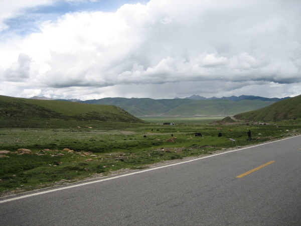 乘坐的是9:30分江孜到拉萨的大巴,车跑的是拉萨到日喀则的南线,过去是拉萨到日喀则的唯一道路,后来扩宽重修,路面很好,但一路要过两处盘山道,分别在江孜与浪卡子之间和浪卡子与曲水之间,而且后面的盘山道要行车一个多小时,最高点有4800米,山高弯急,比较艰险,自从北线修通后已很少有车跑这条路。但这条路有雪山、羊卓雍错(湖)、满拉水库、盘山道、牧场、农田、村庄等,风光很美。