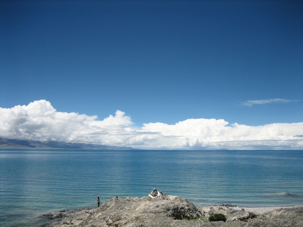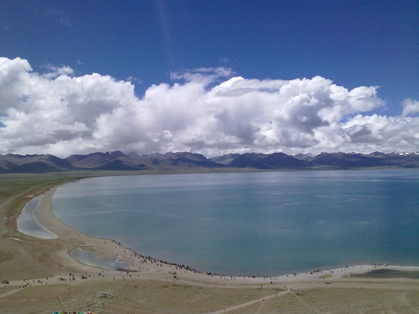 百度上是这样写“纳木错”的:每个到过纳木措的人,整个灵魂都仿佛被纯净的湖水所洗涤。站在纳木措湖边,这世界上最高最美的神湖让人震撼,仿佛置身于一个蓝色的世界。淡蓝、浅蓝、灰蓝、宝蓝、深蓝以及深邃如墨一样的蓝黑,这由浅而深的蓝色,蓝得清澈,蓝得丰润,蓝得迷人,似乎包容了世界上一切的蓝色。