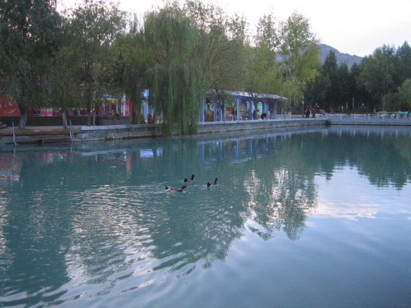 今天是在西藏的最后一天,明天就要回家了,早上睡到10点多,起来后上四方超市买一些西藏特色的食品带回家,与亲朋好友分享。牦牛肉干、青稞酒、雪域牌香烟、林芝、青稞奶茶、青海老酸奶等特产,装了一箱(纸板箱)请服务员封好便于携带。另外带足了在火车上吃的食品。中饭就在宾馆的楼下吃的,午后休息了一会,下午上八廓街培儿子买小工艺品送同学。吃过晚饭,来到宗角禄康公园。