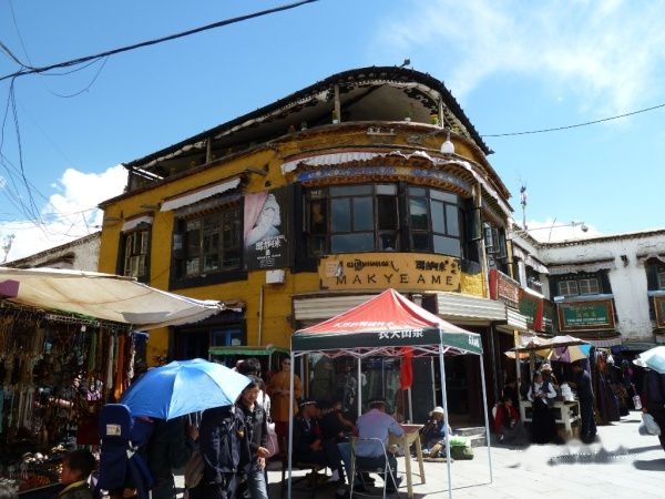 坐在玛吉阿米的楼上,最惬意的就是可以近观八角街的风物人情、远眺北边的山峦晚霞!还可以和来自各地的旅游者聊聊西藏、侃侃拉萨,当然看看那几十本写满旅行者感言的人工纸的笔记本也是在玛吉阿米最放松的享受······,要论店里的吃食,还真没什么可口的!价位中等偏上,不过来这的人应该都不是来饱口福的!