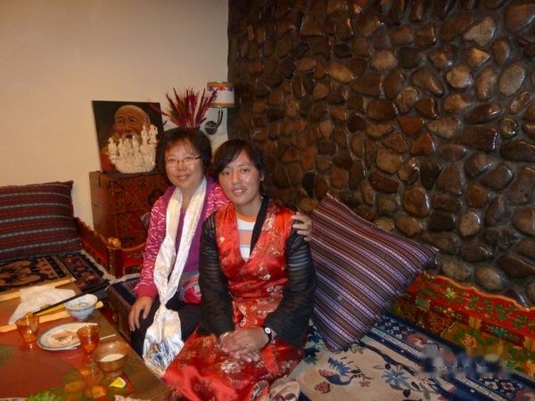 同学的朋友是个很有闯劲的重庆美女,已经怀有三个月身孕的她开着车,带着自己旅行社的几个小同事把我带到了一个装修得很有味道的藏式小院里吃饭,这餐饭也是我在西藏期间吃得最好的一餐!可惜我没记住这家餐馆的名字!不过据重庆美女说这家餐馆是个很有名的藏族家庭餐馆!好像在拉萨城的西北边。