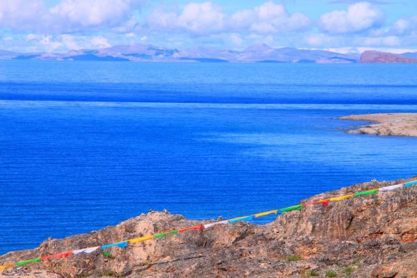 纳木措[Nam-co]又称纳木湖。在历史文献上记载,此湖像蓝天降到地面,故称“天湖”。“纳木错”为藏语,而这个湖的蒙古语和满语名称为“腾格里诺尔”,两种名称都是“天湖”之意。湖面海拔4718米。湖的形状近似长方形,面积1920多平方公里,是西藏第一大咸水湖也是我国第二大咸水湖,为世界上海拔最高的大型湖泊,曾被《中国国家地理》杂志评为中国最美的五个湖泊之一。
