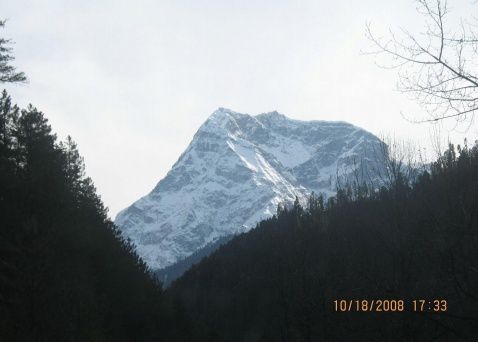 在宾馆大厅晚餐时,我看到了墙上有一幅“然乌湖”的无作者名氏画,幕然跳入了我的眼球。画面上是一片依山的原始林木和湖水,很有诱惑力。打听清楚图的确实地点后,决定明天一定要到这个最美丽的地方。