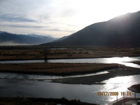 此段路目前正在大规模的维修,估计明年能俊工,那时到直白就可少行100公里了。一路上坡又下坡,避尖石,过独木桥,倒车、让车,下车指挥,真正又一次的司机实地考试。5点20来到了已经败落了的尼洋河风光观景台。