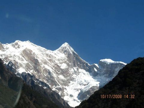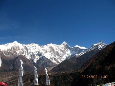 此时天气非常好,一点云都没有,湛蓝的天空映衬绵延起伏的重重山峦,南迦巴瓦毫不吝啬地展现在我的面前。