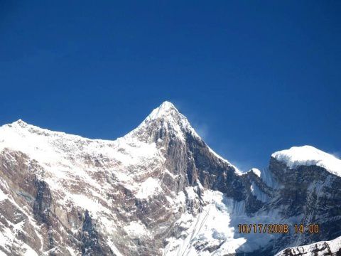 遥望眼前高耸的雪山,她的线条是那样简洁,也是那样清冷无边。皑皑白雪柔和地覆盖在金字塔形的山巅上,仿佛她与时间同在;她完全超然世外,却又与这天地密不可分。