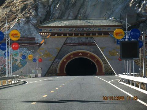 不一会我们看到了一座大桥,w队说这应该是曲水大桥,我们直接过桥后向右拐去浪卡子的路。车上桥后到另一头时才在路牌上看到是拉萨河大桥,前面紧接着就是嘎拉山隧道。