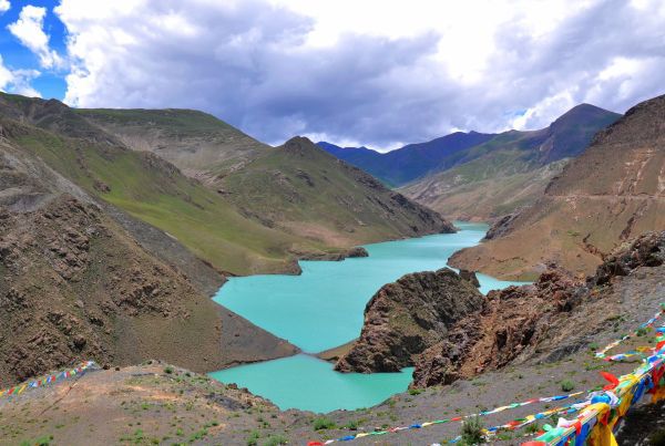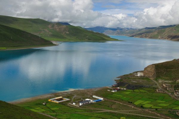 车子经过布达拉宫后出了拉萨,一路上的风景美丽而迷人,经过曲水县雅鲁藏布江大桥,沿拉亚公路南行170公里,翻过5030米的岗巴拉山口,美丽的、碧玉般的羊卓雍措便展现在我们面前。从山口下到羊卓湖畔需要大约30分钟,车子一直沿着湖边的公路走,我们一路欣赏着羊卓雍湖的景色。天气不是太好,但羊卓雍措依然美丽动人,据民间传说,羊卓雍湖是天上一位仙女下凡变成的。羊卓雍措,简称羊湖,与纳木措、玛旁雍措并称西藏三大圣湖,是喜马拉雅山北麓最大的内陆湖泊,湖光山色之美,冠绝藏南。位于西藏山南地区浪卡子县,湖水面积678平方公里,湖面海拔4,441米。东西长130公里,南北宽70公里,湖岸线长达250公里。车子一直开过60千米后接近浪卡子县的时候,这面美丽的镜子才逐渐消失在视线之中。