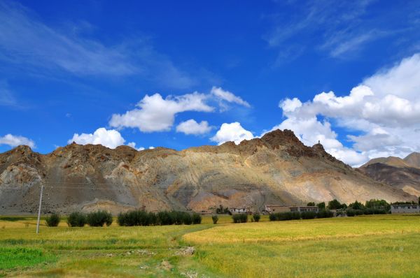 除此之外,路上的沿途风光更加迷人,公路两旁的小麦.青稞.油菜都黄了,一派丰收的景象;独特的藏式民居,朴实的藏民;这里的牛.羊.狗与人和平共处、互不干扰;天气由阴天转晴天到阳光灿烂,一个个不断变换的风景象一幅幅美丽的画卷让人陶醉!念恋不忘!