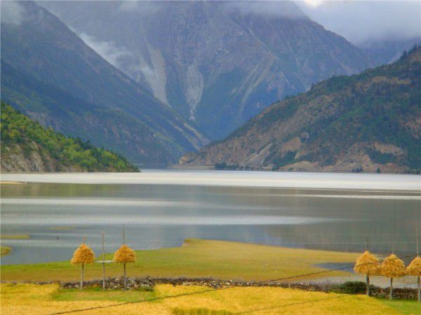 因为路上修路,实行交通管制,定时放行,我们早上3点就从古乡出发,6点前赶到了然乌,在然乌湖玩了一上午,然乌湖边麦田、草垛、高山、草地、湖泊,一幅幅绝色美景,可美中不足的是湖水有些混,可能是雨季过后的缘故吧。吃完午饭赶到八宿,等待过下一路口的时间。人品好、运气好的人就是不一样(这是我们路上说的最多的一句话)