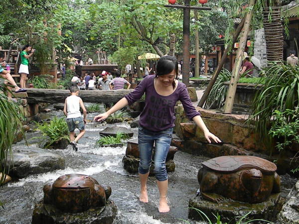 说是小小的古镇,给我感觉怎么有点像步行街咧!保持着一颗平常心,看着这个一条小溪贯穿的街道,孩子,游客光脚在水中玩耍。最终在返程没把握住,下去作了一回美人鱼。偷个小懒,坐人力车游了小半个古镇,20元两个人。小镇中的叶儿耙,紫薯干,波丝糖,呵呵,对我而言当然是很有吸引力的了。