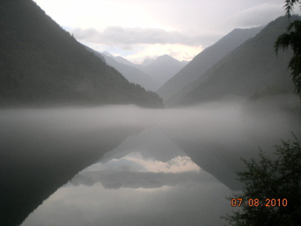 一路走走停停,2点左右,坐车到则查洼沟段,从诺日朗宾馆开始至长海子,长约17公里,景点集中在沟的尽头,这里有季节海、五彩池和长海。车上看到季节海,刚到长海(最大的海子),才照了一张照片,结果是瓢泼大雨从天而降。大伙只好立即乘车下行,还好,比起先前的五花海,我对这最大兴趣不大。车上,和司机磨了磨牙,雨没全停就前往五彩池,一个字,好小喔!和五花海真是无法比啊!