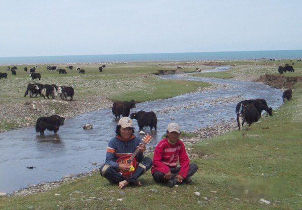 青海湖环湖骑行途中,遇见几位牧童,牧童正在挥鞭赶牦牛,把越界的牛儿赶回來。其中一位手中拿着吉他,坐在草地上弹唱着藏语歌曲,在广阔的草原上放声高唱,听着他的歌声,心中也感染了那一份豪迈舒畅。