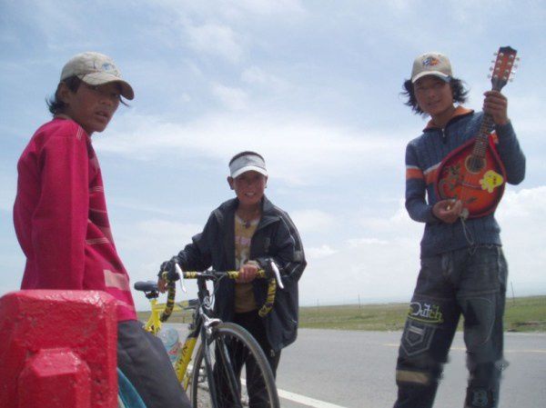 他们对我们的铁马很好奇,又是抚摩,又推着耍,我们和他们闲聊合影,听他们弹吉他,唱着歌,请他们吃饼干。