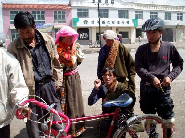 青海湖环湖骑行,要感谢的是西海镇的余西海。脚踏车是向他租借的,他还介绍西海镇好吃的餐馆,带我们到草原上体验牧民的生活,免收一日的租车费。在草原藏包中,品尝了令人回味无穷的酥油奶茶、孔稞儿、糌粑。适逢余太太放假,他们和我们一起去草原体验牧民生活,余夫人好像也是第一次來体验草原生活。言谈中发现,原來余西海不是藏民,父亲是汉族,母亲却是青海少数民族中的"土族"。