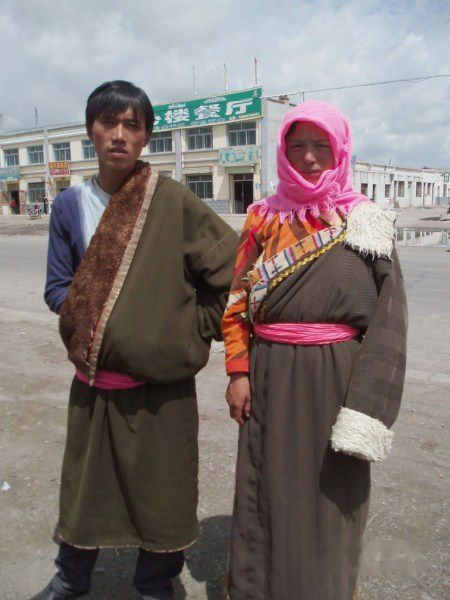 在石乃亥乡,遇见一对藏民夫妇,牵着小女儿,好奇的看着我们,他们身上的传统服饰很有特色。