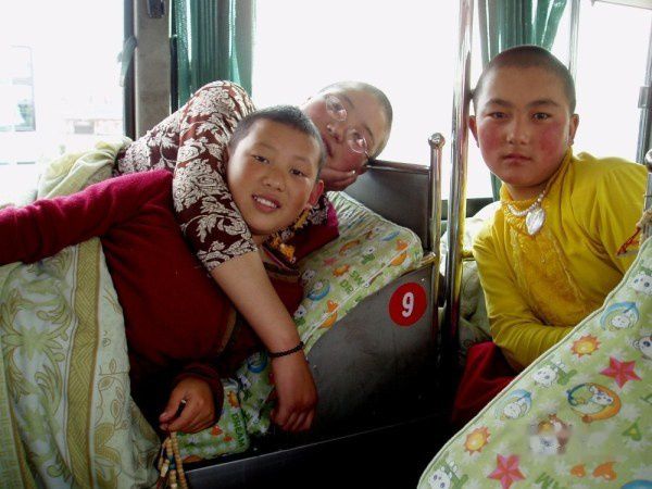 在西宁前往拉萨的车上,碰见几位可爱的小喇嘛。她们是扯拉、昔林巴摩、菜拉摩。向她们学了一些藏语。