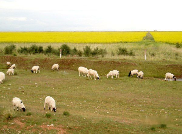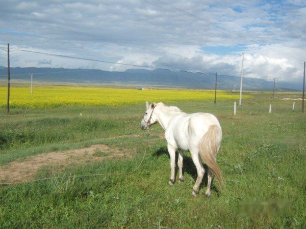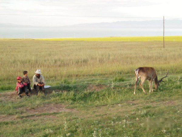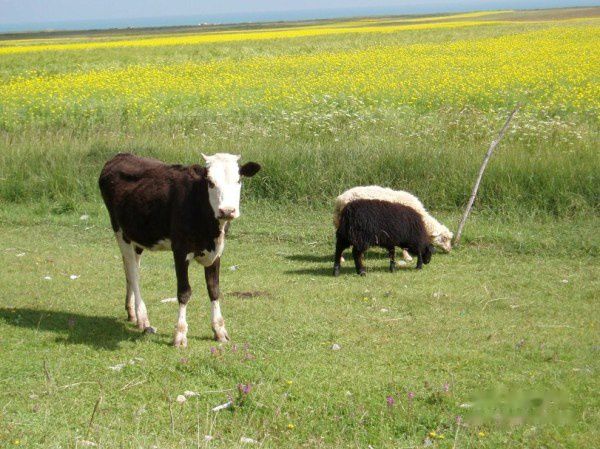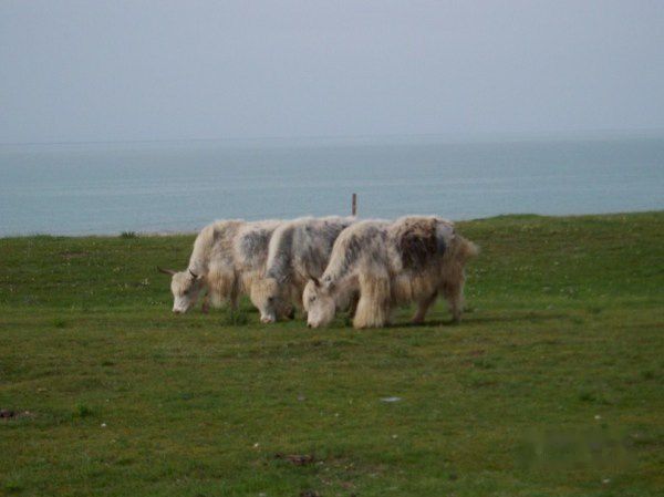 青海湖高原的大牧场上,最常看见的是牛羊。牠们都忙着在吃草,没有理会游人。