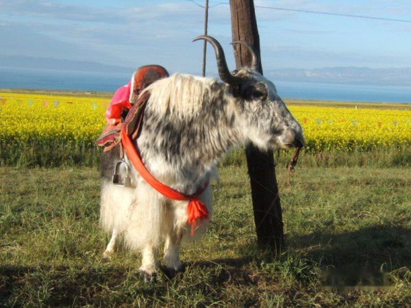 漂亮的白色牦牛常被出租给游客骑在上面拍照留念。