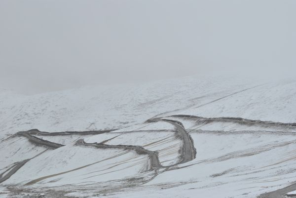 回到帐篷的时候,她们三个已经将行李和背包收拾好了,我们依依不舍的离开了珠峰大本营。此时发现漫山遍野的全是雪,原来昨天晚上,大本营的山上下雨,别的山上下的是雪。