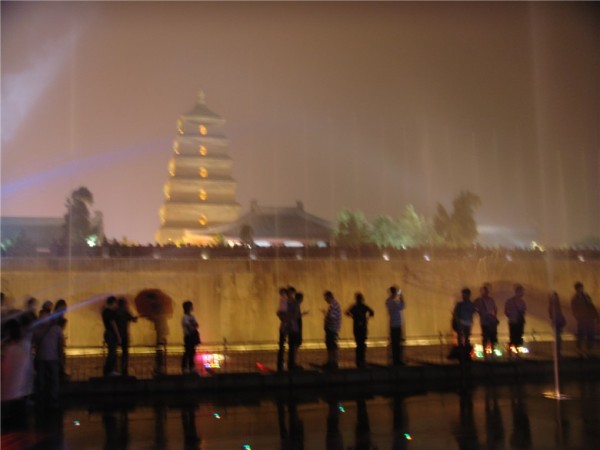 火车晚点一个多小时,下午5点多才到达西安。先住进之前定好的“小花青年旅社”(里面只可以住女生),旅社很干净,,就在市中心的都城隍庙的旁边,出去玩也很方便 。第一次到西北,晚饭就到回民一条街吃西北小吃了:羊肉泡馍、油炸饼。吃完真好逛逛街,消化消化,看看大雁塔、音乐喷泉,听说这是亚洲最大的音乐喷泉。