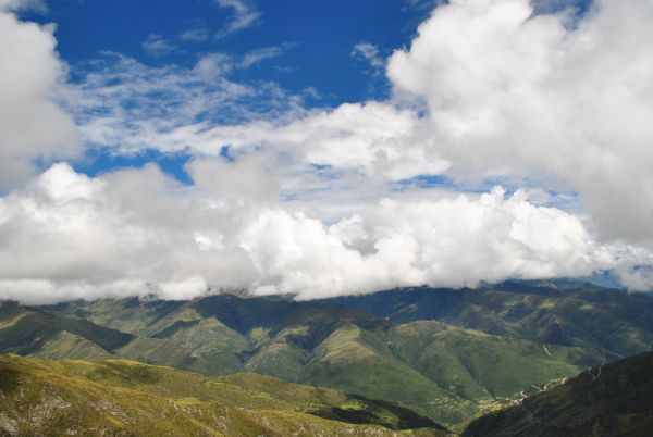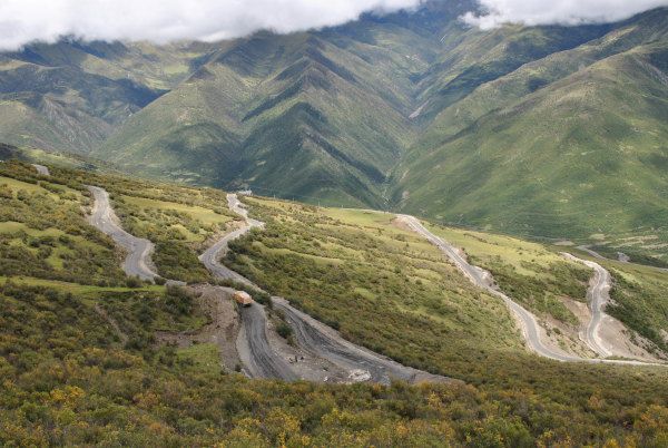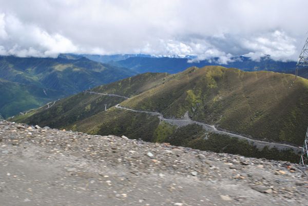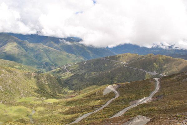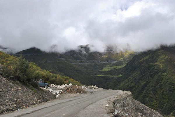 告别了布丹拉山山口,开始下山,师傅说上次他走下山的路的时候,路况特差,不知道这次是否好点,结果就是下山的道路上有多处被雨水冲断的路面,修路工人用成车的大石头填补路面,结果我们的车一直在左右颠簸着,感觉整个车快要散架了。说实话,这辈子头一次走这么难走的路。一路上没见到一辆轿车,这路况,轿车走上来,也别开回去了,直接推下山得了。