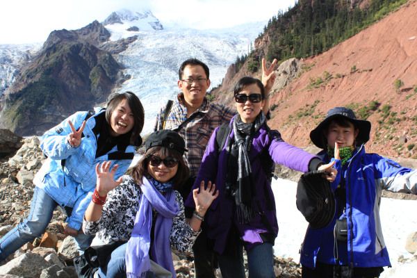 此时此刻,我们深深体会到了看山跑死马的历史典故。继续咬牙前进,终于和迷堆冰川亲密接触。