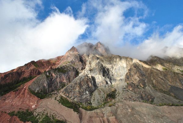 当我发现脚下的一些冰雪的时候,我才意识到了危险,其实我们翻越的并不是结构为石头的山,而正是在冰山上行走,我有些紧张了,老妹和小玉都离我不远,我可以招呼她们两个,可是我见不到小娟和艳艳,不知道她们的情况如何,我开始用我严重缺水的嗓子在一路呼喊她俩的名字,可就是听不见她们的回应,我越发的感觉到了危险,老妹体力有些不支,我只能陪着她慢慢的爬,小玉体力很好,很快就爬到了很高的位置。终于小玉和下面的我打招呼,说看到了她俩,我这一颗悬着的心终于可以放下了。
