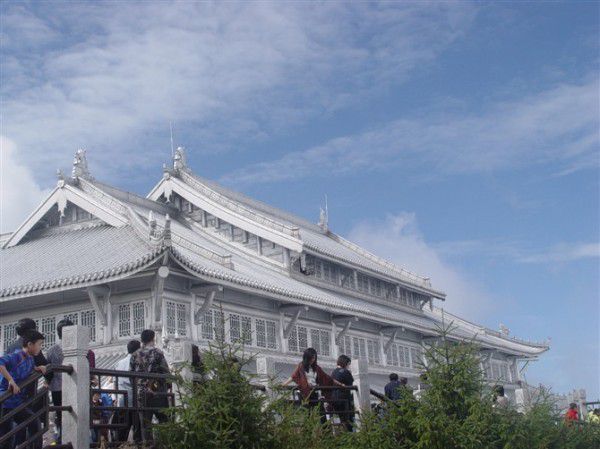 拂挠整行囊,车奔峨眉山。换乘上金顶,山路十八弯,车随路回转,人随车仰颠。金顶矗金佛,法号为普贤,十面观天下,世态皆了然。仙峰绝顶处,必定有奇观,闲云挂天际,迷雾卧山前,青峰相继隐,金瓴彼此现。目接风光远,心怀天地宽,借佛一处景,暂做半日仙。不觉天向晚,山脚觅客栈,蚊虫合一曲,伴我山中眠。次日东方白,径直谒万年。千古此一刹,香客心犹虔,怎奈佛偏袒,无票不与见!伴佛而栖者,尚且有钱念,离佛而去者,未必无佛缘。前行闻涛声,清音阁忽现,两溪谷中汇,双桥石上悬,中有牛心亭,结于两桥间,远望如鹰隼,振翅冲云干!穿过一线天,拾步到猴园,闻说有奇景:灵猴拜神龛。猴将学人形,人要返自然,人猴凭栏立,四目相对看。听得一声呼,身后有劫案,小猴抢瓶奶,无奈盖难旋,左右狂厮咬,横竖不解馋,急红泼猴脸,乐坏游人面!猴王捡将起,开盖品甘甜,处世凭经验,人与猴一般。深山藏古庙,大小三十间,群寺难毕至,只因有时限。有幸听梵音,无暇见佛面,就此且别过,来日再参禅。