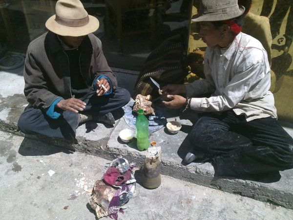其实藏民还是很友好的,邻座的两位女藏民在车上吃藏粑,我好奇的看着她俩,她看到后送了一个给我尝尝,我闻了下有羊奶味,一口咬下去嚼不动,太硬了!没吃完我偷偷的将剩下的放进了口袋里,后来女藏民又递过来一个,我谢绝了。内心想真不好意思,我实在吃不惯!以致于后来没敢进藏餐厅!后来了解到,藏民是游牧民族,经常在外放牛和羊,几个月不回家,他们就将青稞粉拌了羊奶和水,晒干后带在身上当食粮,可几个月不坏。