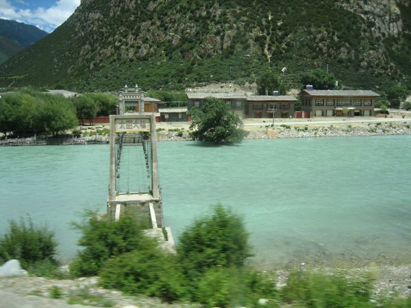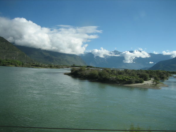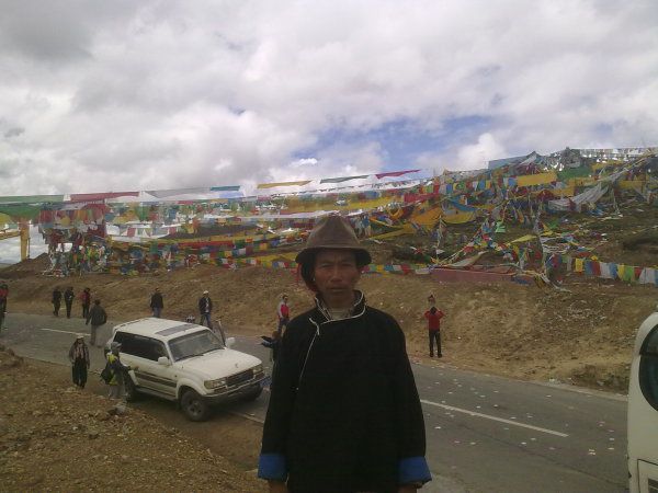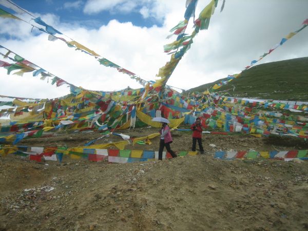 7点多起床,退了房。出租去东郊客运站。买了8:10去八一的车票。大巴出拉萨城要到警务站领限速卡,一般规定拉萨到八一要8个小时,如超速就扣分,后来去其他地方发现都这样,看来这是西藏限制超速的好办法。整个车内没几个游人,大多是藏民。藏民身上有一种羊奶加酥油茶的味道,刚开始着实不太适应。沿拉萨河一路东行,翻越5013M的米拉山口,车子停了下来,我与儿子都下了车,外面刺骨的山风、五彩的经幡、洁白的雪山,这是我平身第一次到过的5000米以上的山口,儿子帮后座的两位康巴汉子调手机拍照功能,我一人站着欣赏着风景,两三分钟后我感觉头晕的历害,耳朵失聪,赶快上车躺在座位上,大约过了大半个小时才得以恢复,这可能是本次去西藏的唯一次较严重的高反吧!后来到过更高的那木措的那根拉山口都没高反。(5190M)