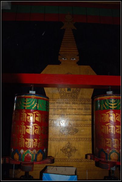 走进院子,进入红塔里边,与一起来的藏族人围绕一层的转经筒,转经。