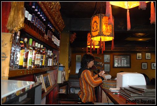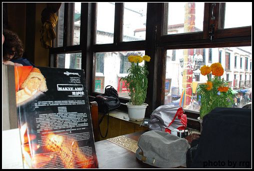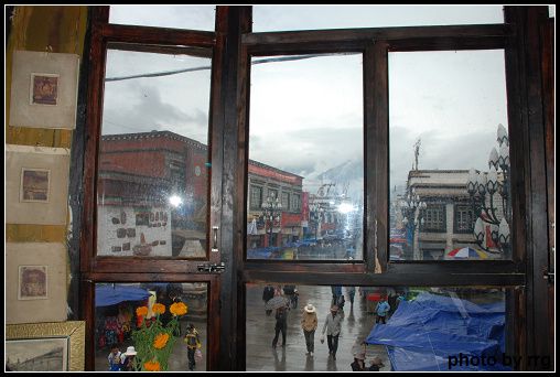 坐在靠窗的木桌边,一林在点菜。我则忙于拍窗外雨中的八廓街。