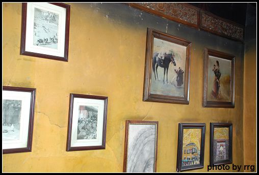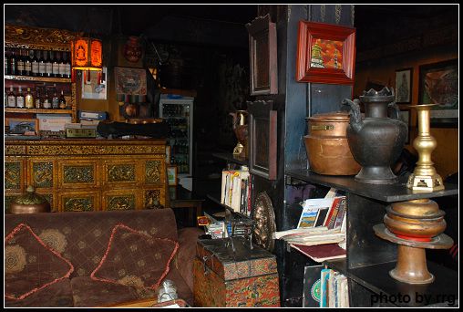 二楼墙上挂着过去西藏的黑白老照片,唐卡和饰品。