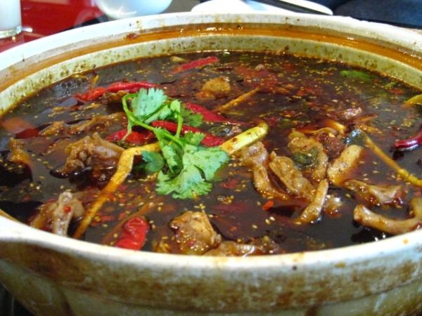 点菜的时候居然问我们要还什么兔头啊,青蛙啊什么,GF是相当有爱心的女孩,昨天已经鄙视我在一下飞机就买了个小兔头啃,所以今天就点了个鹅掌。我们都喜欢吃辣,开始吃的时候吃的不亦乐乎的。连呼成都的东西真好吃啊。吃到最后看都不想看了。现在想来,估计是份量太大吃称了的缘故。