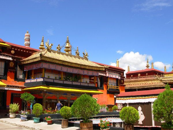 大昭寺始建于公元647年,是藏王松赞干布为纪念文成公主入藏而建,有20多个殿堂,主殿高4层,镏金铜瓦顶,辉煌壮观,具有唐代建筑风格,也吸取了尼泊尔和印度建筑艺术特色。大昭寺内供奉的释迦牟尼12岁时等身像,是佛祖在世时塑成的,佛祖曾亲自为他开光加持……对供奉在这里的每一个菩萨我都虔诚叩拜,不断许愿,希望能感动他们并如愿以偿吧。