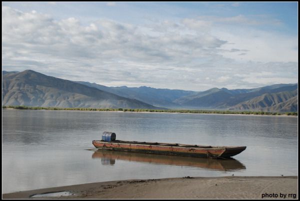 忽然,前面的雅鲁藏布江面变得非常宽阔,还有几艘渡船横在公路边的沙滩上。
